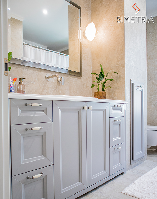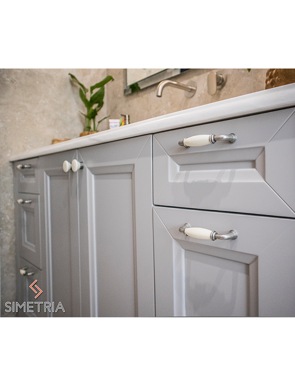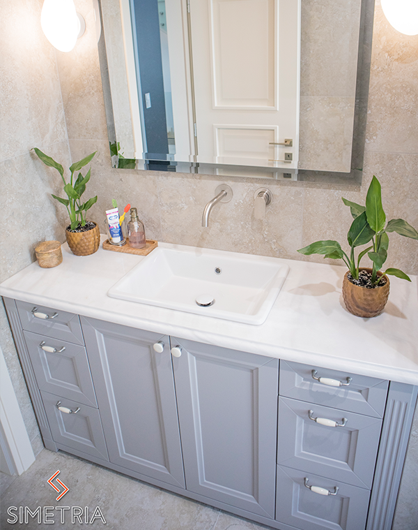 Το μπάνιο του σπιτιού. Εκεί που ξεκινά η μέρα με στυλ… και τελειώνει με ηρεμία. Όταν η λεπτομέρεια συναντά τη λειτουργικότητα, το αποτέλεσμα είναι ένα μπάνιο SIMETRIA. Χειροποίητες κατασκευές, με μεράκι και φροντίδα. Ξεχωριστή αισθητική, που αναδεικνύεται από τις άψογες πρώτες ύλες. Απόλυτη οργάνωση, βάσει των εξατομικευμένων αναγκών κάθε χρήστη. Δεν είναι απλώς ένα έπιπλο. Είναι το πιο κομψό «καλημέρα» στο πρωινό σας. Έπιπλο μπάνιου σε νεοκλασική γραμμή, με βαφή λάκας σε γκρι απόχρωση.